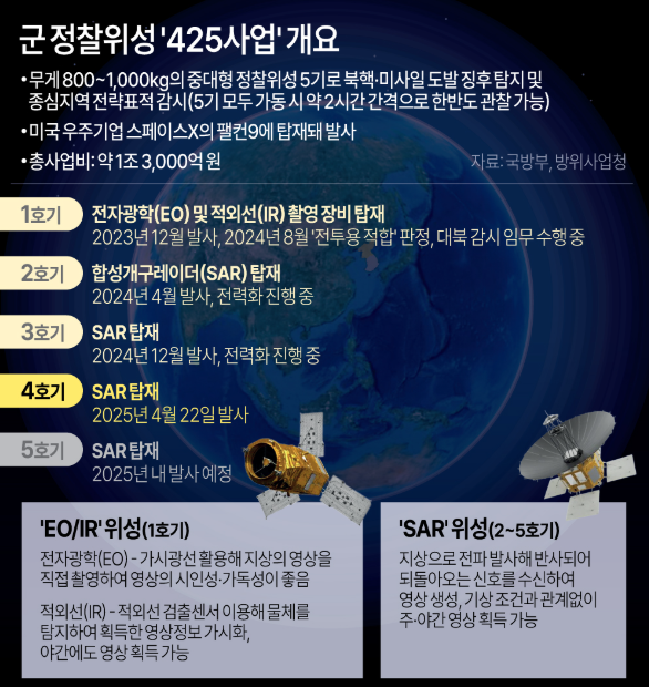 | 4호기 | 2025.4.8 | 전자광학 | 핵 기지 추적 / 이동식 발사대 감시 | 1기 대비 해상도·자료처리 속도 향상 |