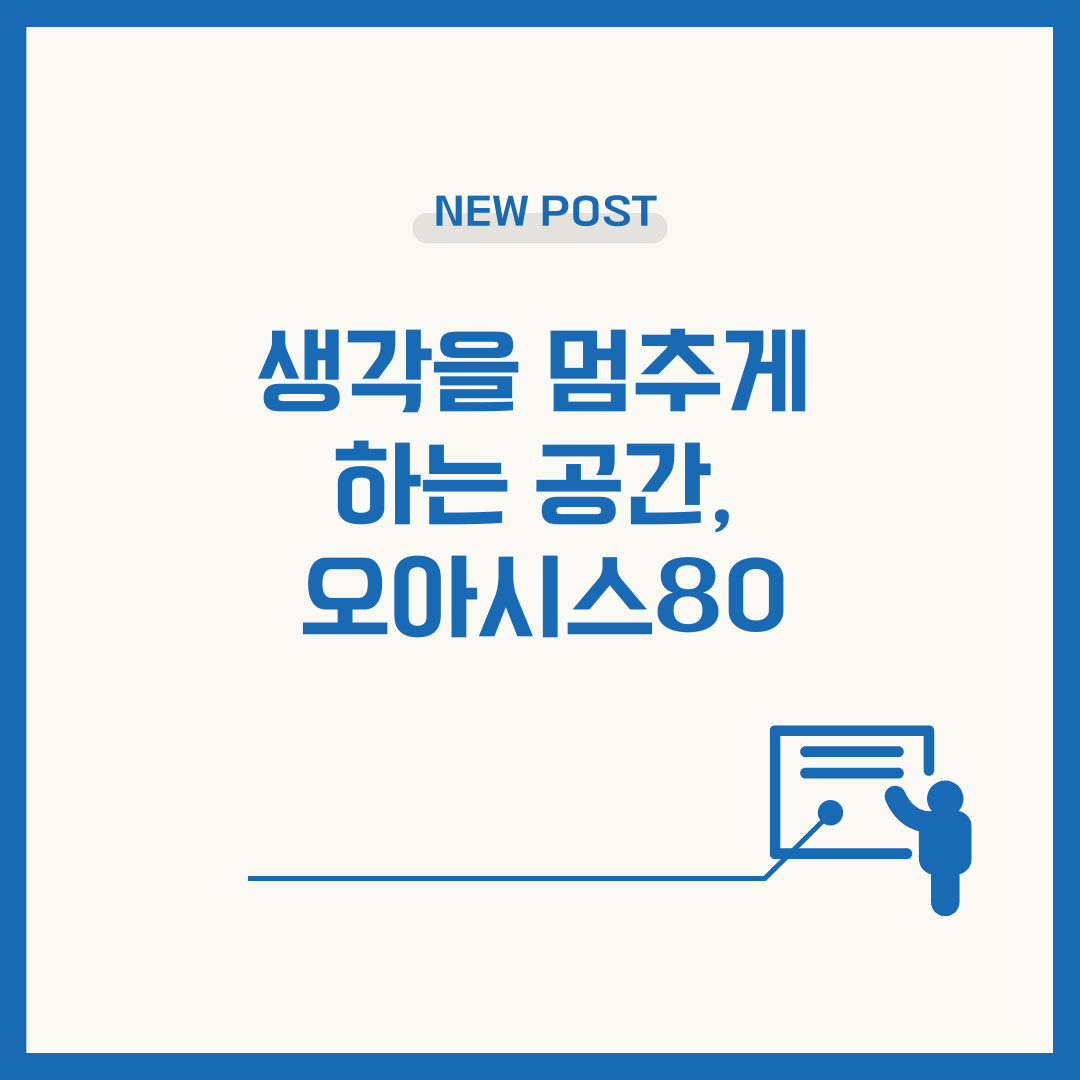 📣 이 공간이 궁금하다면, 지금이 가장 좋은 시기입니다. 하루쯤은 오아시스80에서 ‘생각을 쉬어보는 것’을 추천드립니다 😊