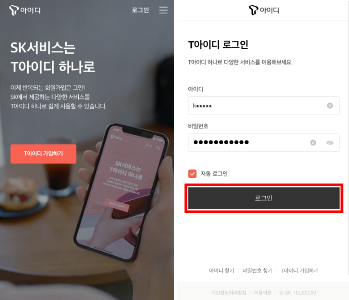 - ✅ SKT앱 자동 로그아웃